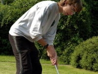 Westdeutscher Meister. Es mussten am Samstag und Sonntag zusammen fünf Kombirunden gespielt werden, eine besteht aus 18 Betonbahnen und anschließend 18 Eternitbahnen. Bei den Jugendlichen setzte sich Sebastian Kube vom Heimverein MGC AS Witten an die Spitze. Diese verteidigte er bis zum Schluss und gewann mit 262 Schlägen. Hendrik Battling, ebenfalls MGC AS Witten, konnte bei seiner ersten Teilnahme mit 281 Schlägen gleich den fünften Platz erreichen. Beide sind damit für die Deutsche Kombi-Meisterschaft in Arheilgen Anfang Juli qualifiziert. ![]() Sebastian Kube zeigte auf der heimischen Anlage eine gute Leistung und siegte bei den Junioren. Foto: Barbara Zabka | |