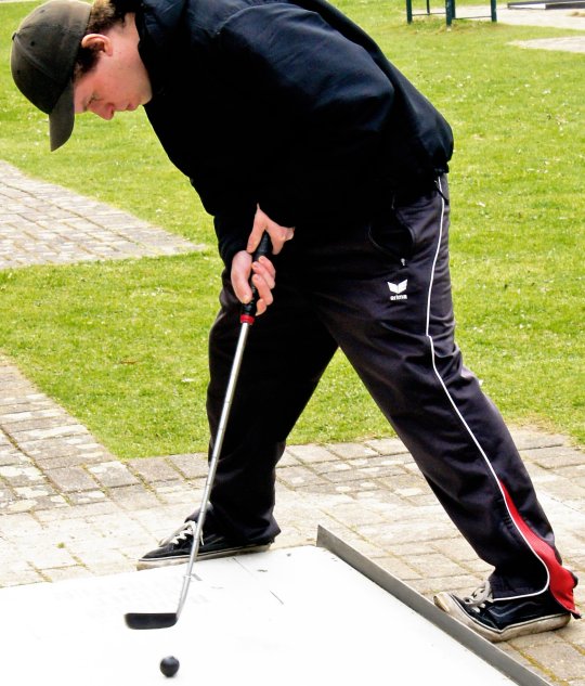 ![]() Stellte mit 83 Schlägen einen neuen Bahnrekord in Dortmund-Syburg auf: Wittens Hendrik Battling. Foto: Paul Jezierski/MGC Bahnengolf MGC "AS" Witten: Verbandsliga-Team macht die Saison wieder spannend. Landesliga-Reserve holt Rang zwei. Dortmund/Köln. Die Verbandsliga-Bahnengolfer des MGC „AS“ Witten traten am vierten Spieltag auf der Anlage des Tabellenletzten in Dortmund-Syburg an - und überraschte mit einem glänzenden Start. Nach der Auftaktrunde nämlich lagen weder die Gastgeber noch die Topfavoriten Dormagen-Brechten oder Lüdenscheid vorn, sondern die Wittener mit 146 Schlägen. Die "Asse" spielten die vier Runden sehr konstant (146, 143, zweimal 145) und sicherte sich mit 23 Schlägen Vorsprung den Tagessieg. Ausschlaggebend war, dass gleich drei Wittener unter den sechs Tagesbesten waren: Theo Klein (93), Olaf Schmidt (89) und der nervenstarke Schlussspieler Hendrik Battling, dem mit Runden von 22, 21, 21 und 19 Schlägen für die jeweils 18 Bahnen ein neuer Bahnrekord mit insgesamt 83 Schlägen gelang. Zweiter wurde Lüdenscheid (602) vor Spitzenreiter Dormagen-Brechten (616). Damit wird es an den letzten beiden Spieltagen in Biebertal und Lüdenscheid im Kampf um die Meisterschaft noch einmal spannend: Dormagen-Brechten führt mit 24 Punkten knapp vor Lüdenscheid (22) und Witten (20). Mit der Landesliga-Reserve des MGC "AS" Witten hatte eigentlich keiner mehr gerechnet - doch das Quintett aus der Ruhrstadt trumpfte in Köln-Rath groß auf. Nach einer 155-er-Runde zu Beginn lag man punktgleich mit Porz in Front. Eine schwache zweite Runde (168 Schläge) ließ die Wittener zwischenzeitlich auf Platz vier zurückfallen, doch die vier Männer und eine Frau zeigten Teamgeist und spielten mit 154 eine sehr gute Schlussrunde. Am Ende bedeutete das Platz zwei mit insgesamt 477 Schlägen, knapp vor Godesberg (479) und Porz (480). Den Tagessieg holten sich die heimstarken Spieler des ACR Köln (465). Der nächste Spieltag folgt am 8. Mai beim MGC Bergisch-Gladbach Odenthal. Der Bezirksliga-Spieltag in Bochum-Langendreer verlief für die Wittener "Dritte" ohne große Überraschungen. Trotz guter Leistungen von Manuela Wolf und Karl-Heinz Wolf (beide 91) landeten die Wittener wieder auf Rang vier (396 Schläge). Tagessieger Felderbachtal (350) setzte seinen Durchmarsch in der Liga fort, Neviges (377) und der Bochumer MC (386) erreichten die Plätze zwei und drei, die sie auch in der Ligatabelle belegen. Das Heimteam des BGSC Bochum (425) wurde erneut Letzter und bleibt hinter den Wittenern Liga-Schlusslicht. Anmerkung Pressewart "AS" Witten: Der Fehler (der Bezirksligaspieltag fand in Gelsenkirchen-Bulmke statt, nicht in Langendreer) geht auf die Kappe des MGC-Pressewartes - sorry! | |
